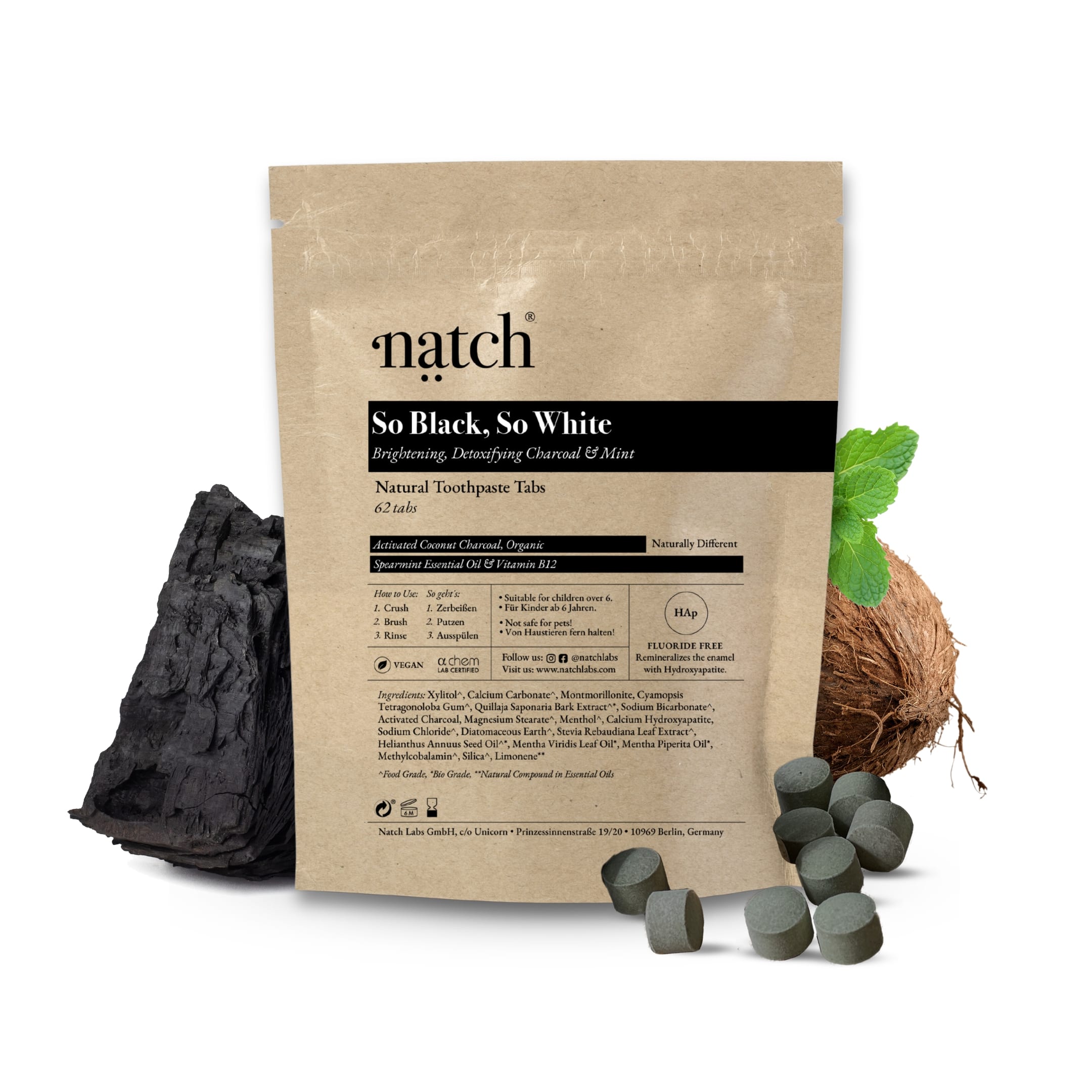NATCH TOOTHPASTE TABS SO BLACK, SO WHITE BAG