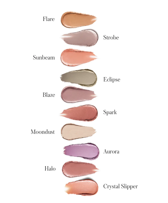 Crystal Slipper: Water/Aqua/Eau, Mica, Propanediol, Caprylic/Capric Triglyceride, Polyglyceryl-4 Caprate, Silica, Glycerin, Sodium Dehydroacetate, Aminomethyl Propanediol, Caprylyl Glycol, Ethylhexylglycerin, Tin Oxide, Chenopodium Quinoa Seed Extract, *Camellia Sinensis (Green Tea) Leaf Extract, Sodium Benzoate, Potassium Sorbate, Titanium Dioxide (CI 77891), Iron Oxides (CI 77491).