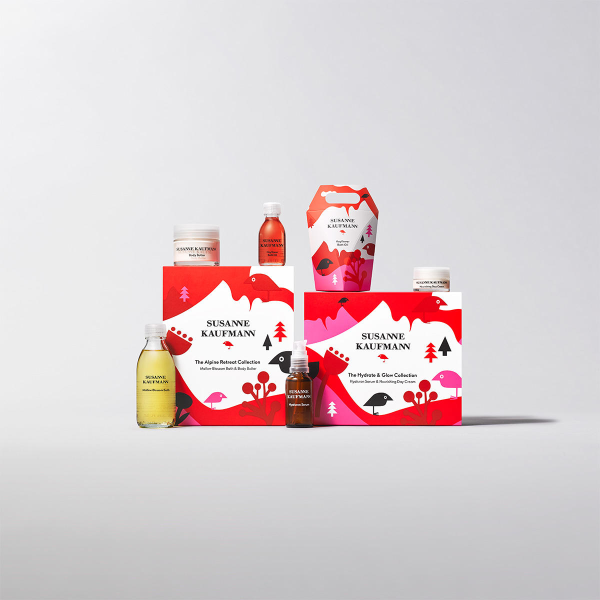 Das lebendige Design des Bath Oils, entstanden in Zusammenarbeit mit der Illustratorin Joanna Gniady, fängt die stille Schönheit der Alpen im Winter ebenso ein wie die festliche Freude der Feiertage.